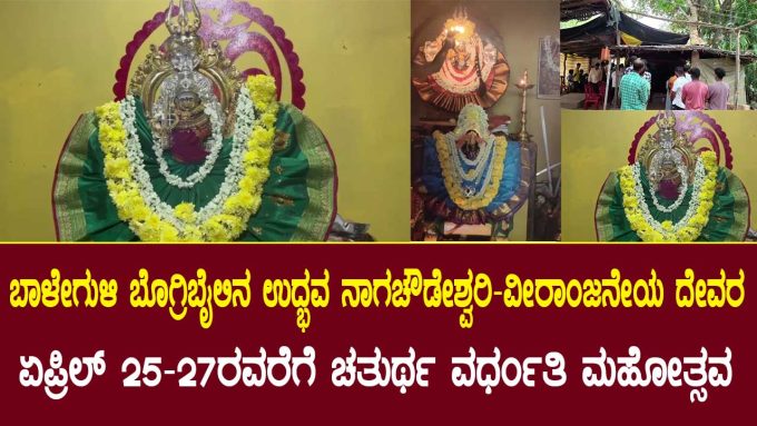 ಅಂಕೋಲಾ: ತಾಲೂಕಿನ ಬಾಳೇಗುಳಿ ಬೊಗ್ರಿಬೈಲಿನಲ್ಲಿರುವ ಪ್ರಸಿದ್ಧ ಧಾರ್ಮಿಕ ಕ್ಷೇತ್ರವಾದ ಶ್ರೀ ಉದ್ಭವ ನಾಗಚೌಡೇಶ್ವರಿ ಅಮ್ಮನವರು ಹಾಗೂ ಶ್ರೀ ವೀರಾಂಜನೇಯ ಸ್ವಾಮಿ ದೇವರುಗಳ ಚತುರ್ಥ ವಾರ್ಷಿಕ ವರ್ಧಂತಿ ಉತ್ಸವ ಮತ್ತು ಪುನರ್ ಪ್ರತಿಷ್ಠಾಪನಾ...