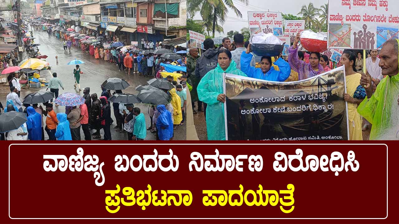 ಅಂಕೋಲಾ: ಖಾಸಗಿ ಸಹ ಭಾಗಿತ್ವದಲ್ಲಿ ಅಂಕೋಲಾದಲ್ಲಿ ಕೇಣಿ ಗ್ರೀನ್ ಫೀಲ್ಡ್ ಬೃಹತ್ತ್ ವಾಣಿಜ್ಯ ಬಂದರು ನಿರ್ಮಾಣಕ್ಕೆ ಸಿದ್ಧತೆಗಳು ಮತ್ತಷ್ಟು ಹೆಚ್ಚಾಗುತ್ತಿರುವ ನಡುವೆ ಸ್ಥಳೀಯ ಮೀನುಗಾರರ ನೇತೃತ್ವದ ಬಂದರು ವಿರೋಧಿ ಹೋರಾಟ ಸಮಿತಿ ಆಶ್ರಯದಲ್ಲಿ ಕೇಣಿ ಕಡಲ ತೀರದಿಂದ ಮೀನುಗಾರ ಮಹಿಳೆಯರೂ ಸೇರಿದಂತೆ ಸಾವಿರಾರು ಜನ ಪ್ರತಿಭಟನಾಕಾರರು ಸುರಿವ ಮಳೆಯನ್ನೂ ಲೆಕ್ಕಿಸದೇ 4-5 ಕಿ.ಮೀ ದೂರದ ವರೆಗೆ ಪಾದಯಾತ್ರೆ ನಡೆಸಿದರು.