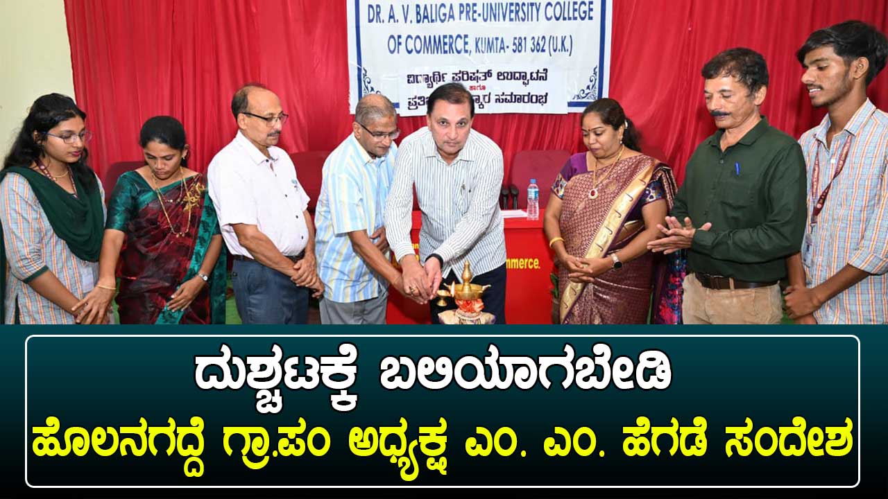 ಕುಮಟಾ: ಯುವಜನತೆಯು ದೇಶದ ಆಸ್ತಿ. ದುಶ್ಚಟದಿಂದ ದೂರವಿದ್ದರೆ ವಿದ್ಯಾರ್ಥಿಗಳ ಭವಿಷ್ಯ ಉಜ್ವಲ ವಾಗುತ್ತದೆ ಎಂದು ಉದ್ಯಮಿಗಳು ಮತ್ತು ಹೊಲನಗದ್ದೆ ಗ್ರಾಮ ಪಂಚಾಯತ್ ಅಧ್ಯಕ್ಷ ಎಂ. ಎಂ. ಹೆಗಡೆ ಹೇಳಿದರು. ಅವರು ಡಾ ಎ. ವಿ. ಬಾಳಿಗಾ ಪದವಿಪೂರ್ವ ವಾಣಿಜ್ಯ ಮಹಾವಿದ್ಯಾಲಯದಲ್ಲಿ ವಿದ್ಯಾರ್ಥಿ ಪರಿಷತ್ ಉದ್ಘಾಟಿಸಿ, ಮಾತನಾಡಿದರು.