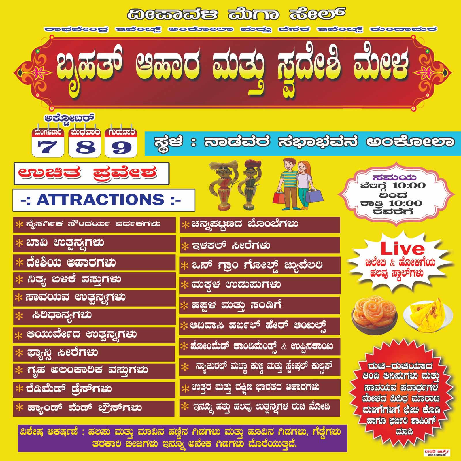 ಅಂಕೋಲಾದ ನಾಡವರ ಸಮುದಾಯ ಭವನದಲ್ಲಿ ಬೃಹತ್ ಆಹಾರ ಮತ್ತು ಸ್ವದೇಶೀ ಮೇಳ: ಅಕ್ಟೋಬರ್ 7, 8,9 ರಂದು ಆಯೋಜನೆ