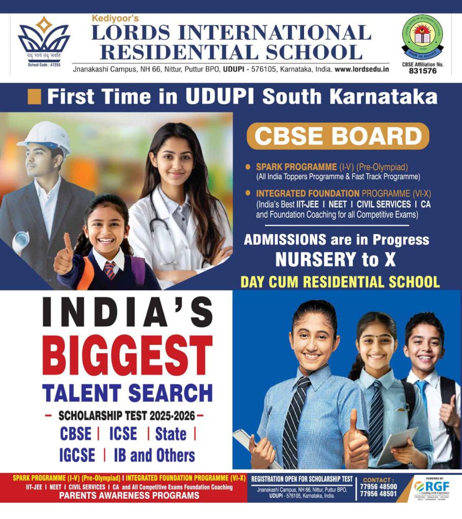 ಉಡುಪಿ: ರಾಜ್ಯದಲ್ಲೇ ಪ್ರಸಿದ್ಧ ಪಡೆದ ಉಡುಪಿ ಲಾರ್ಡ್ಸ್ ಇಂಟರ್ನ್ಯಾಷನಲ್ ರೆಸಿಡೆನ್ಷಿಯಲ್ ಸ್ಕೂಲ್ , ಬಡ, ಮಧ್ಯಮವರ್ಗ ಮತ್ತು ಪ್ರತಿಭಾವಂತ ವಿದ್ಯಾರ್ಥಿಗಳಿಗೆ ಒಟ್ಟು 3 ಕೋಟಿ ಮೌಲ್ಯದ ವಿದ್ಯಾರ್ಥಿವೇತನ ನೀಡಲು ನಿರ್ಧರಿಸಿದೆ. ಈ ಹಿನ್ನಲೆಯಲ್ಲಿ ಇದೇ ಡಿಸೆಂಬರ್ 21ರಂದು ವಿದ್ಯಾರ್ಥಿವೇತನ ಪರೀಕ್ಷೆಯನ್ನು ಆಯೋಜಿಸಲಾಗಿದೆ.