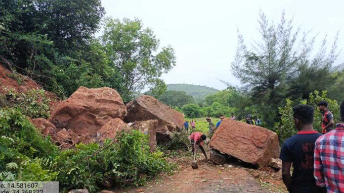 ಅಂಕೋಲಾ: ನಿರಂತರವಾಗಿ ಸುರಿಯುತ್ತಿರುವ ಮಳೆ ಮತ್ತಿತರ ಕಾರಣಗಳಿಂದ ಗುಡ್ಡದ ಭಾಗವೊಂದು ಕುಸಿದ ಪರಿಣಾಮ, ಭಾರೀ ಗಾತ್ರದ ಕಲ್ಲುಬಂಡೆಗಳು ರಸ್ತೆಯಲ್ಲಿ ಉರುಳಿ ಬಿದ್ದು , ರಸ್ತೆ ಸಂಚಾರಕ್ಕೆ ಕೆಲಕಾಲ ತೊಡಕಾದ ಘಟನೆ ಸಂಭವಿಸಿದೆ....