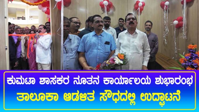 ಕುಮಟಾ: ತಾಲೂಕಾ ಆಡಳಿತ ಸೌಧದಲ್ಲಿ ನೂತನವಾಗಿ ನಿರ್ಮಾಣಗೊಂಡಿರುವ ಶಾಸಕರ ಕಾರ್ಯಾಲಯವನ್ನು ಇಂದು ಉದ್ಘಾಟನೆ ಮಾಡಲಾಯಿತು. ಕುಮಟಾ ಹೊನ್ನಾವರ ವಿಧಾನಸಭಾ ಕ್ಷೇತ್ರದ ಶಾಸಕರಾದ ದಿನಕರ ಶೆಟ್ಟಿಯವರು ರಿಬ್ಬನ್ ಕತ್ತರಿಸುವುದರ ಮೂಲಕ ಕಾರ್ಯಾಯವನ್ನು ಉದ್ಘಾಟಿಸಿದರು....